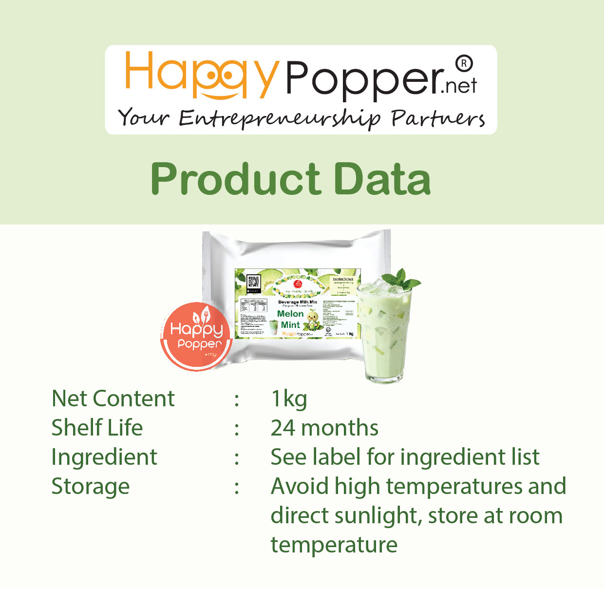Concentrated Milk Syrup Melon Mint 1kg ( 20pkts/Ctn ) BT-SY016 浓缩薄荷蜜瓜风味炼奶1公斤装