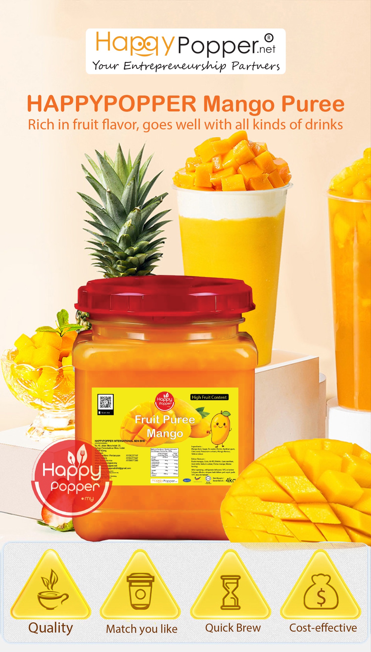 Fruit Puree 4kg Mango (6btl/ctn) BT-EP001 芒果风味果泥 4公斤装