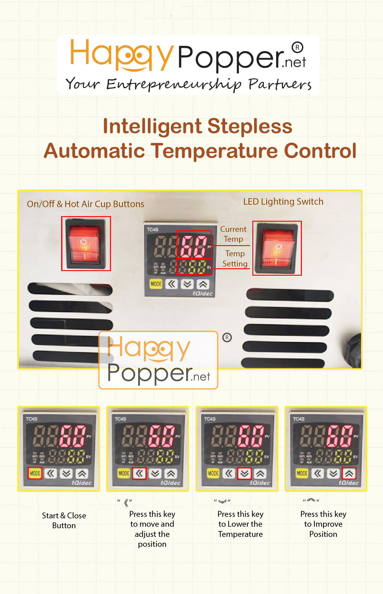 Popcorn Display Showcase Warmer 4 Tank PC-M0025 爆米花保温柜四格