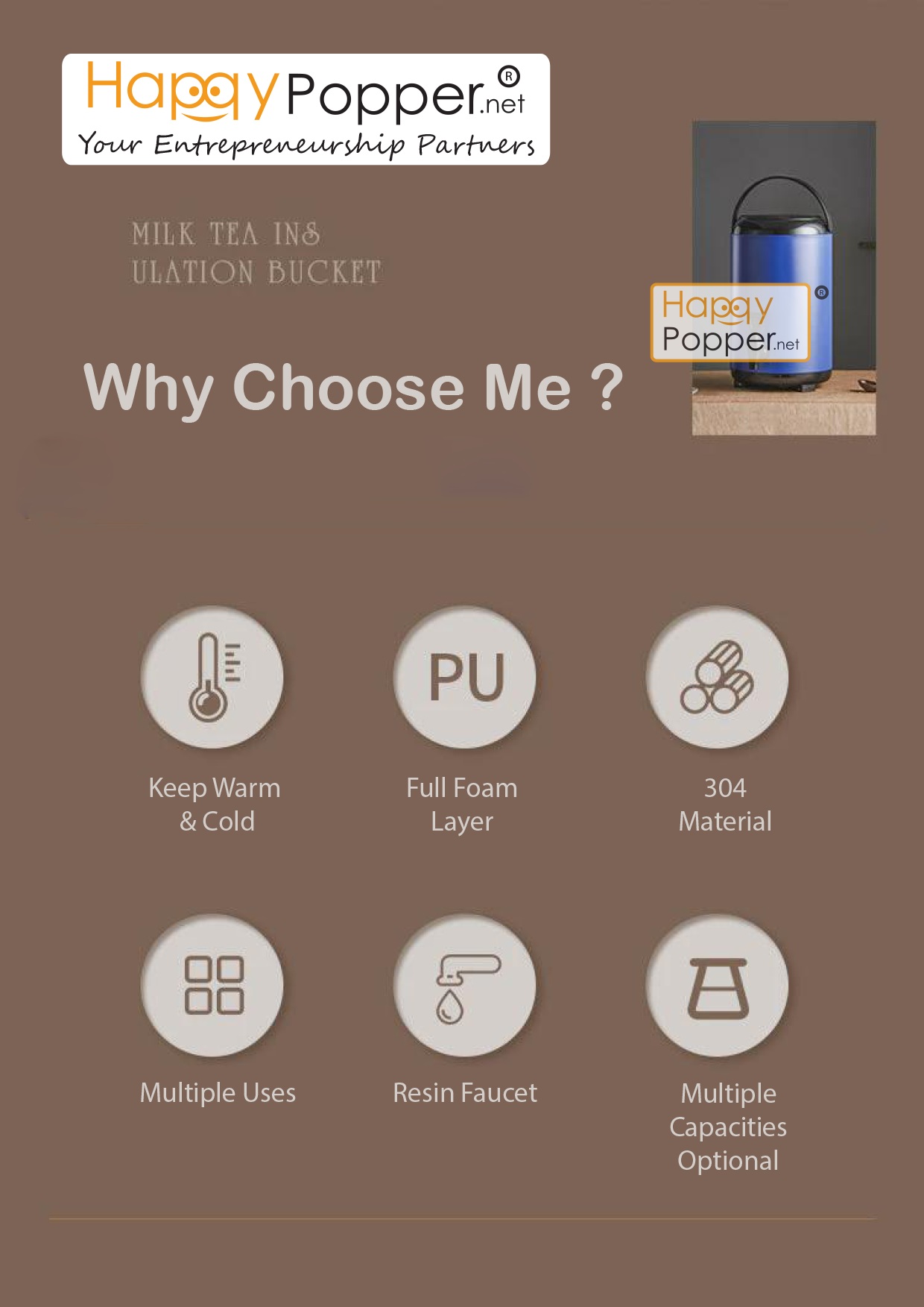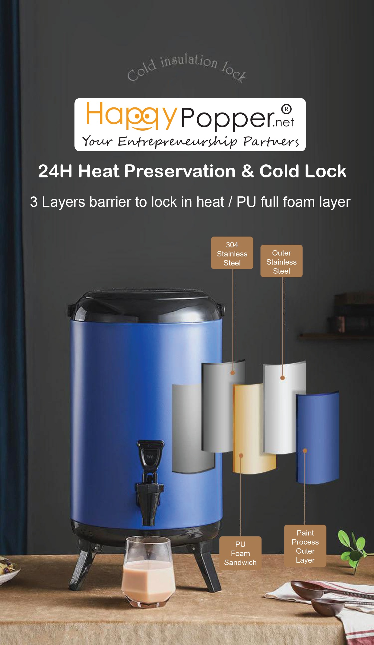 Milk Tea Bucket Water Dispenser ( Digital Temperature Screen ) 8 Liter JD-M0017 8升奶茶保温桶(带温度显示器)