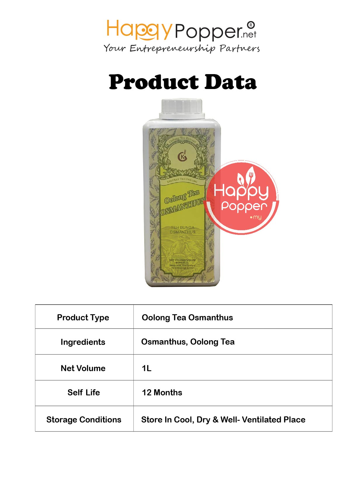 Oolong Tea - Osmanthus 1L (15btl/ctn) (Ready To Use) BT-TE013 桂花风味乌龙茶 1升